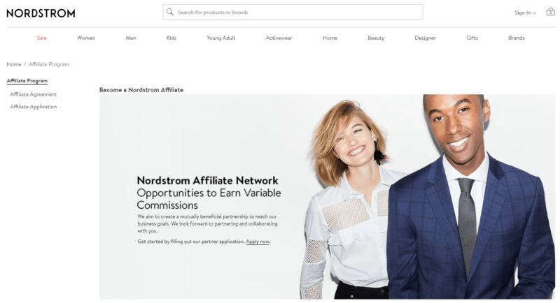 Nordstrom的返利联盟平台使在线营销人员能够赚取佣金来推广时尚和美容产品。此外,该公司还与乐天合作管理整个项目并创造用户友好的体验: