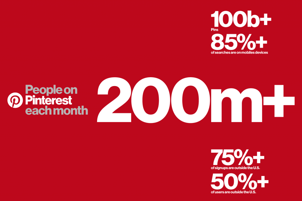 尽管您可能会倾向于将其标记为“小”,但Pinterest背后的数字却讲述了另一个故事。Pinterest的视觉搜索引擎每月吸引2亿活跃用户,每月搜索量超过20亿,每月Pin图超过1000亿。