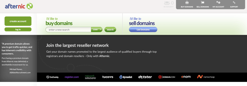 Afternic 是另一个域名交易平台。它拥有超过 500 万个列表,自 1999 年以来一直存在。该服务每月有超过 7500 万次域搜索,因此它是一个高流量的市场。Afternic 的母公司是 GoDaddy,因此通过其市场销售的列表也会在 GoDaddy 上以高级域名的形式出现。列表是免费的,但要向该服务支付 20% 的销售佣金。