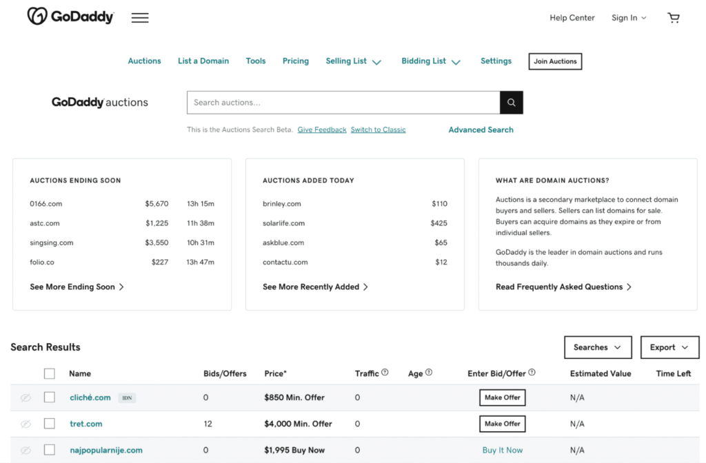 如果您正在寻找更快的周转时间,您可以在拍卖网站上出售您的域名。使用其中一项服务时,只需创建您的列表,设置最低出价金额,并观察感兴趣的买家相互竞争并推高价格。