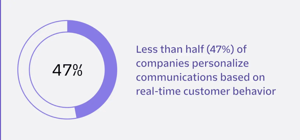 这是为什么?因为每个市场都有不同的文化,并且每种文化都需要您的营销计划中直接的、个性化的关注。对于现代消费者来说,个性化是一个非常重要的因素。尽管如此,只有47%的公司根据客户表现出的实时行为来个性化他们的通信。