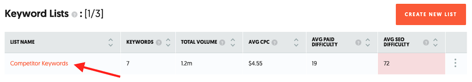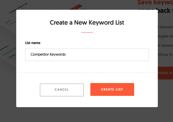 此功能可让您保存稍后可以返回的关键字列表。要开始,请单击Create Your First List按钮。