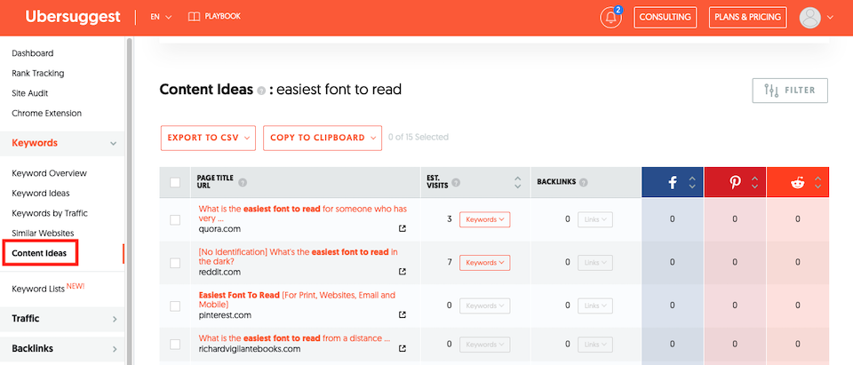对于需要计划和优化内容的预算有限的自由撰稿人来说, Ubersuggest是一款出色的工具。但是,拥有博客的任何人或任何企业都可以从Ubersuggest中受益。