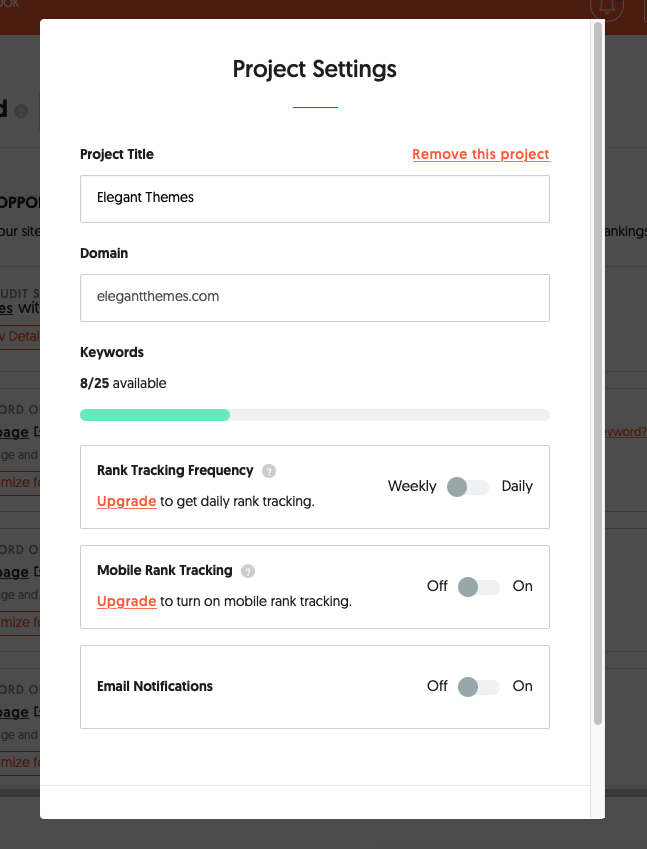 使用高级计划,您将获得更多项目、跟踪关键字、位置、报告等。您还可以选择支付一次性终身费用。