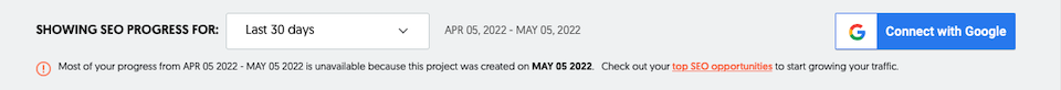 - 继续滚动,您将看到Showing SEO Progress For的下拉菜单,可让您选择日期范围。