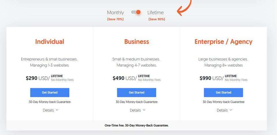 - 企业/机构:每月99美元,最适合运行八个或更多网站的大型企业和机构。