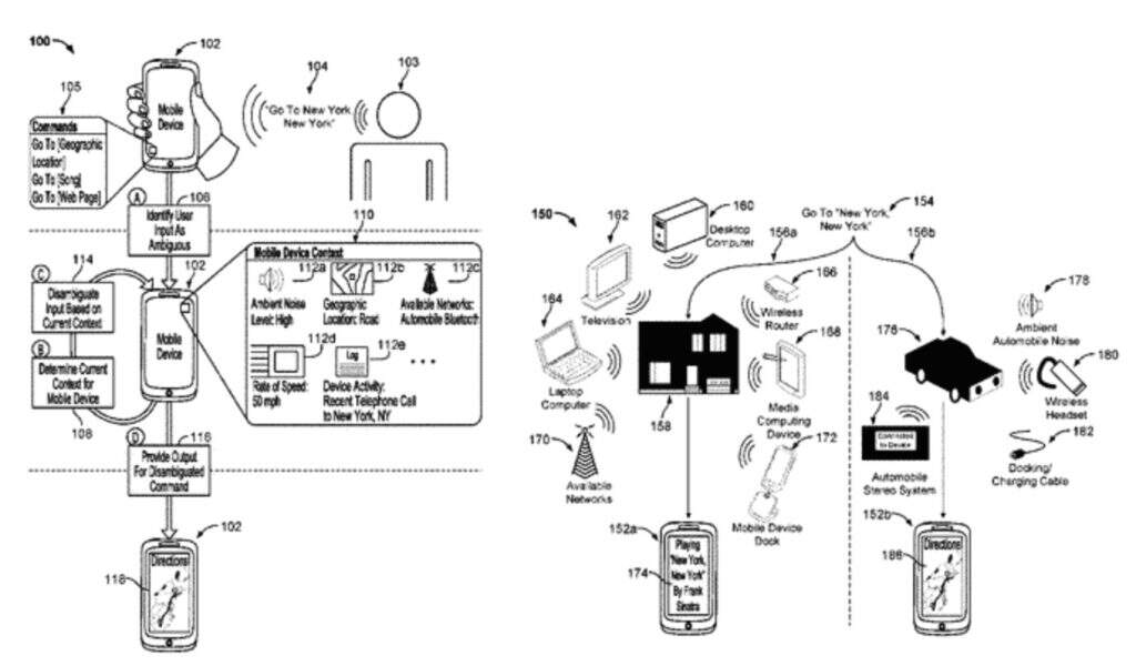根据该专利,模糊的用户查询可以根据用户设备的实时位置、用户移动速度(乘车等)、设备类型(移动或桌面)消除歧义,以及其他因素。