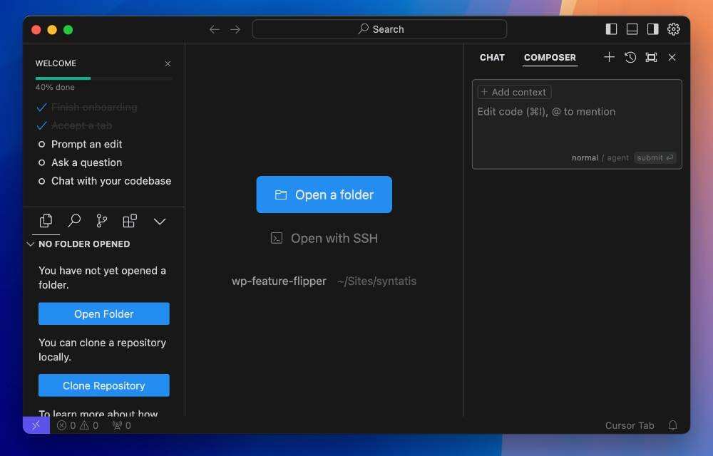 由于 Cursor 基于 VS Code,它保留了多行编辑、调试和 Git 集成等功能,如果你从 VS Code 转过来,可以轻松过渡。