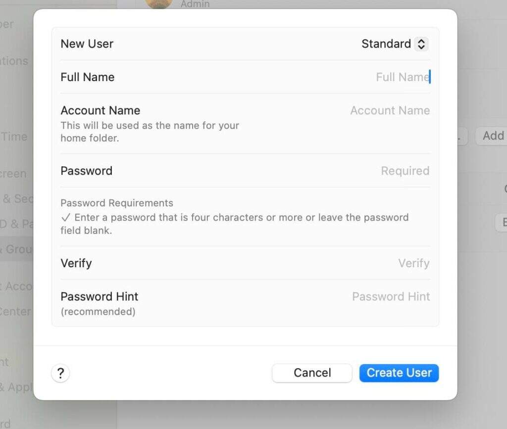 在 macOS 上运行多个 Google Drive 实例的最简单方法之一就是创建独立的用户账户。每个账户都可以拥有自己的 Google Drive 应用程序,并登录到不同的 Google 账户。请按照以下步骤操作:
