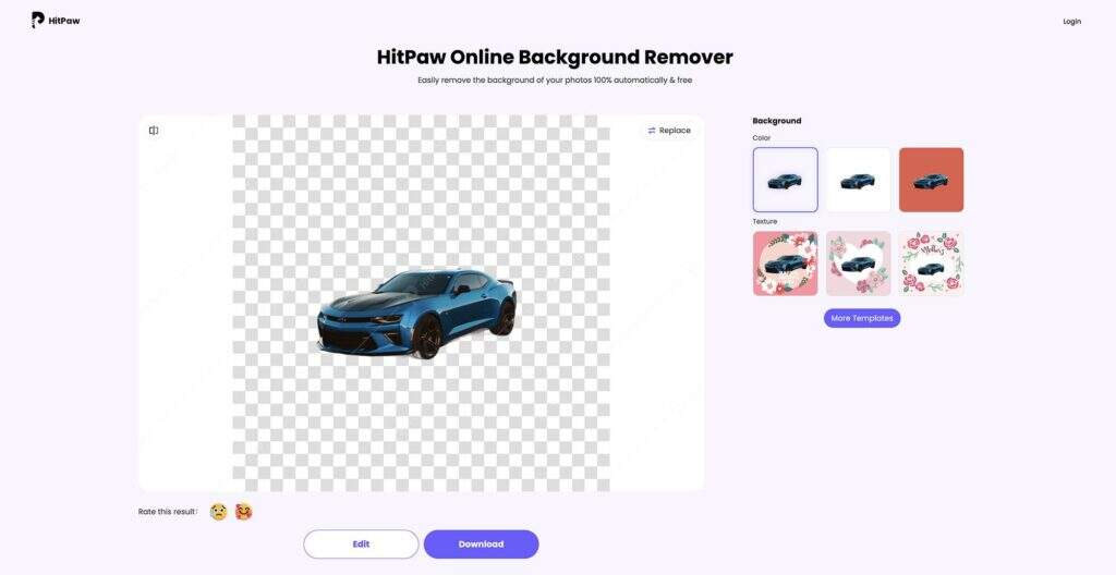 HitPaw Online Background Remover允许用户在去除背景后编辑图片。它提供各种功能,如添加不同颜色的背景,使用预先设计的背景模板,甚至将照片融入设计中。用户还可以调整图像的大小以满足他们的需要,确保最终的完美效果。