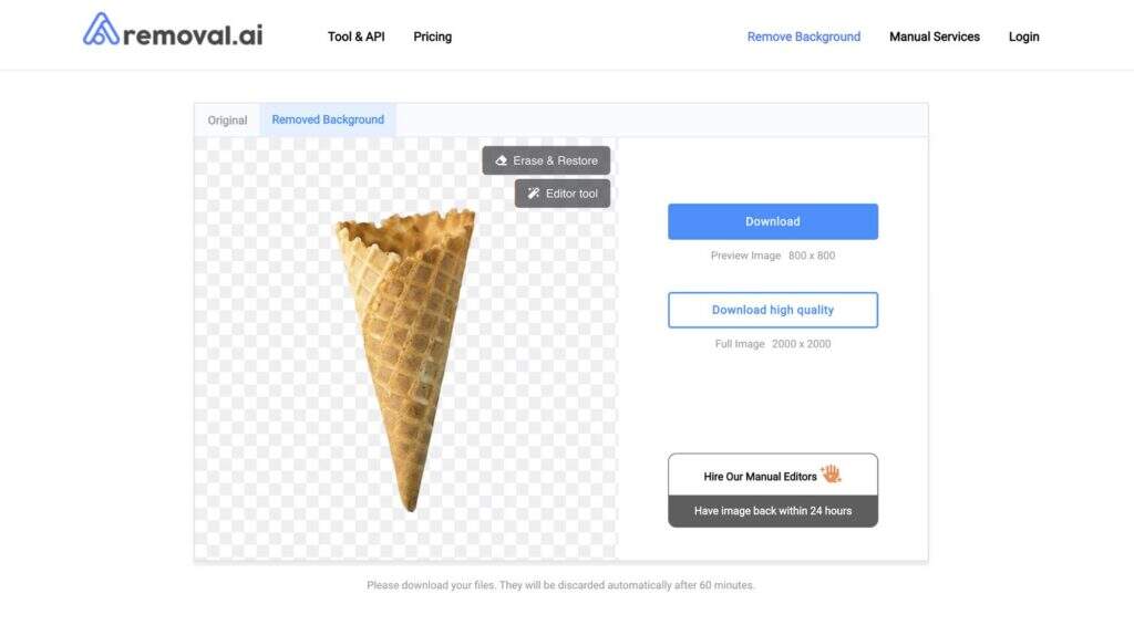 这个工具的一个主要特点是能够预览去除背景后的图像结果。这允许用户在最终确定其设计之前做出任何必要的调整。然而,需要注意的是,下载编辑过的图像需要付费计划。