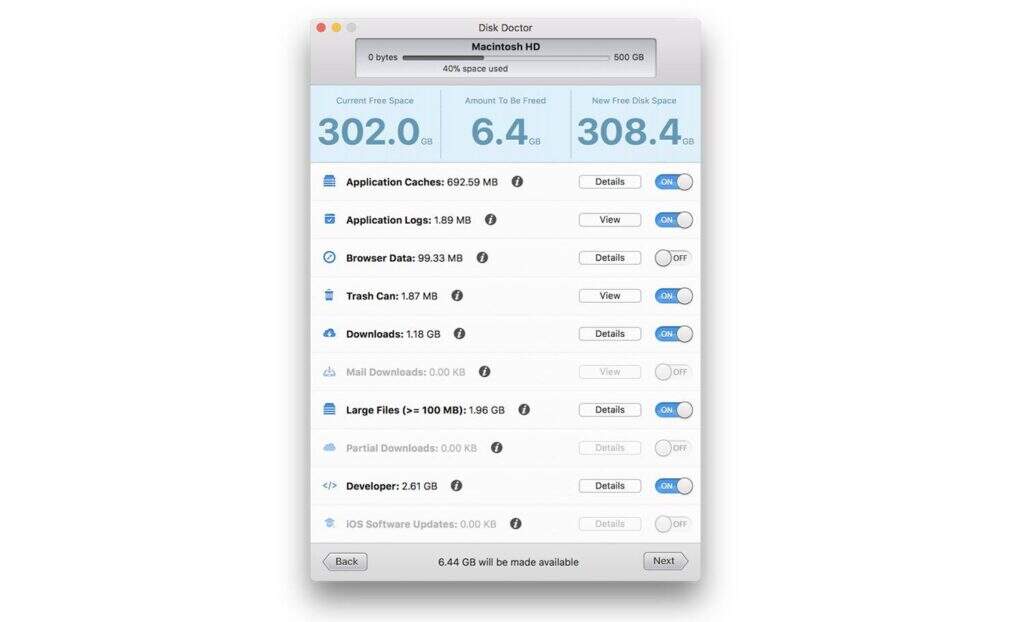 Disk Doctor 可扫描系统中的临时文件、旧日志和其他可能占用空间的杂乱文件。只需点击几下,你就可以删除这些文件,恢复宝贵的存储空间。
