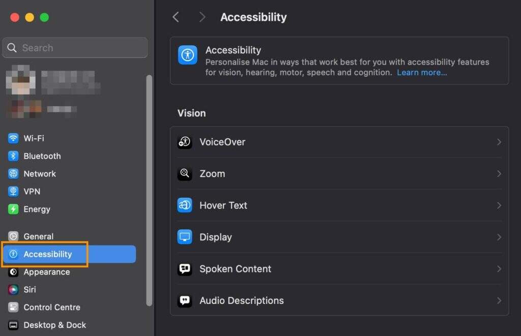 - 打开“系统设置”,然后点击“辅助功能”。