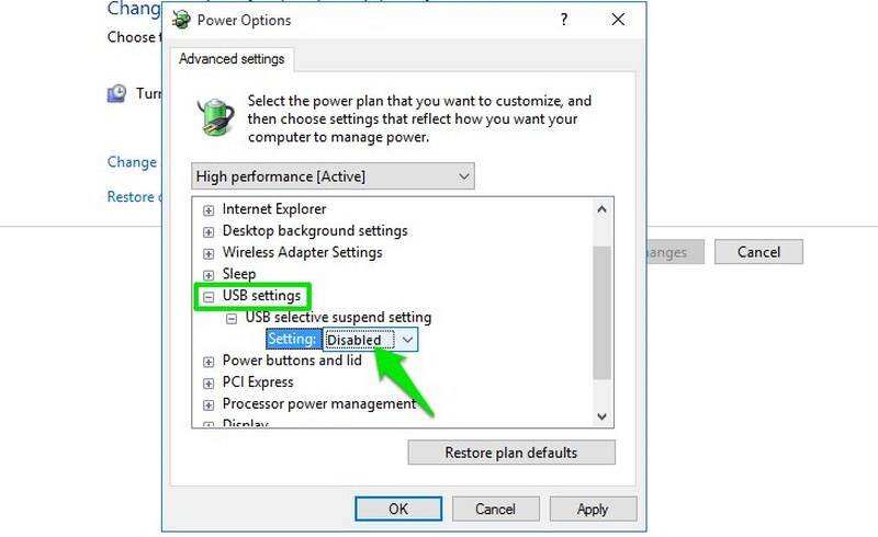 - 展开USB 设置并禁用USB 选择性挂起设置。