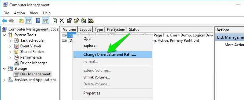 在此右键单击丢失的驱动器,然后选择 “更改驱动器代号和路径”。