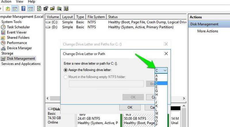 现在点击 “更改”,然后在下一页选择不同的驱动器盘符。这样,驱动器就会再次显示在文件资源管理器中。