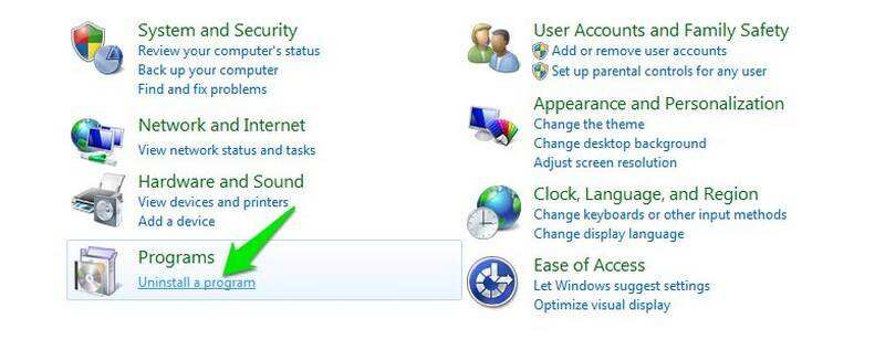 从开始菜单进入 “控制面板” ,点击 “程序” 选项下的 “卸载程序“。