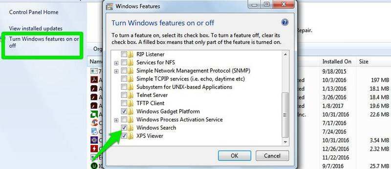 在此点击左侧面板中的“打开或关闭 Windows 功能” 按钮。此时将打开 “Windows 功能” 窗口,在其中选中 “Windows Search” 旁边的复选框,然后点击 “确定” 保存更改。
