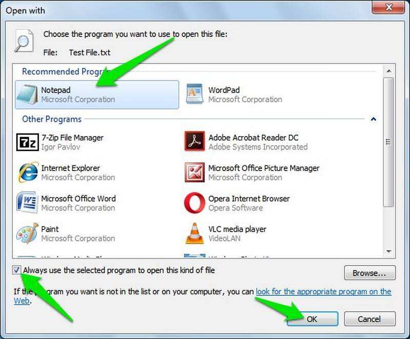从程序列表中选择要设置为特定文件类型默认程序的程序,并确保选中“始终使用所选程序” 选项。现在,选定的程序将始终用于打开选定的文件类型。