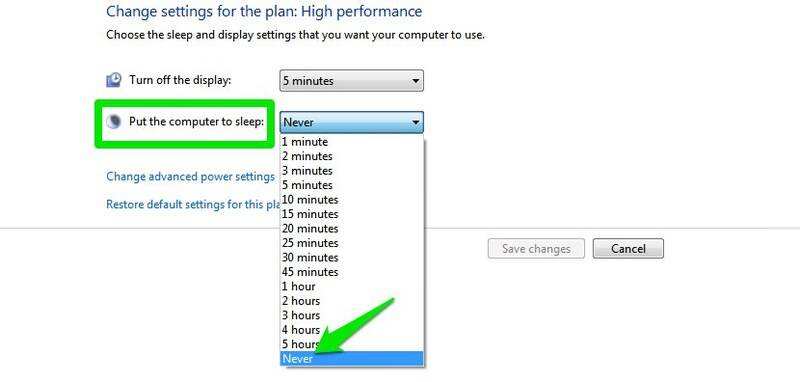 - 在此点击“更改计划设置”,然后从“让电脑进入休眠状态” 旁边的下拉菜单中选择 “从不“。这将阻止电脑自动进入睡眠模式。