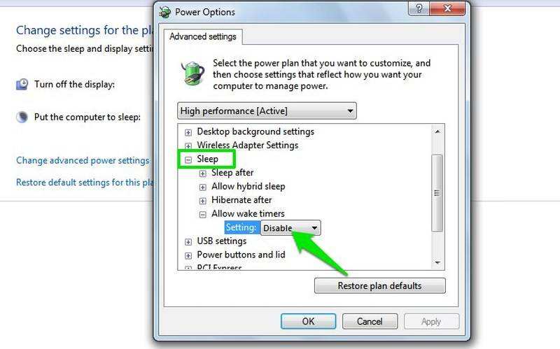 要阻止应用程序唤醒电脑,请再次进入“电源选项” 中的 “高级设置“,并展开 “睡眠” 选项。现在展开 “允许唤醒计时器” 选项并 “禁用”。这样就可以阻止任何程序从睡眠状态唤醒电脑了。