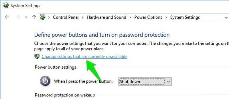 - 现在点击顶部的 “更改当前不可用的设置” 选项。