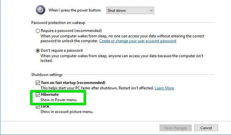 - 向下滚动并选中 “休眠” 旁边的复选框。