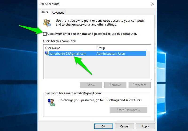 现在,被选中的用户无需在每次启动 Windows 10时输入登录密码。