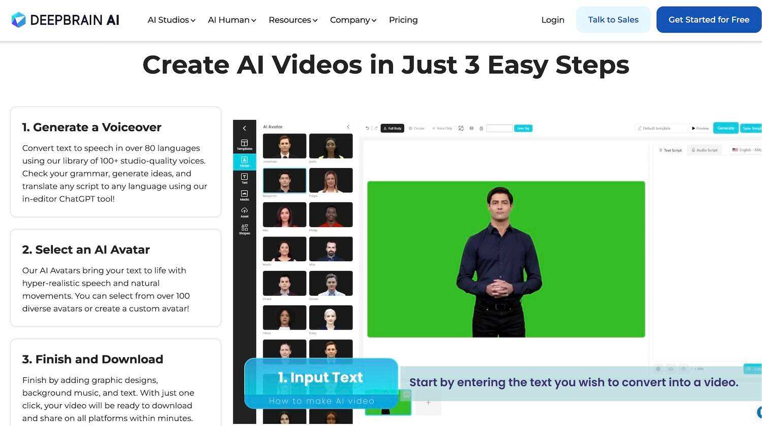 - DeepBrain AI 擅长制作逼真的虚拟主持人和教育内容。