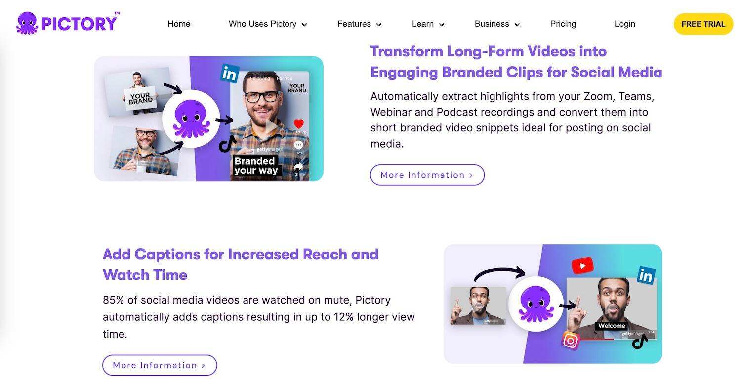 Pictory 注重效率和简便性,能让内容创作者和营销人员以最小的投入最大限度地发挥现有内容的影响力。