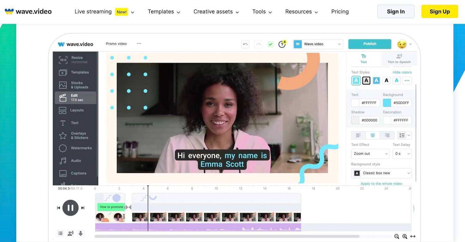 - Wave.video 提供视频营销的全面工具,含内置分析和社交分享功能。