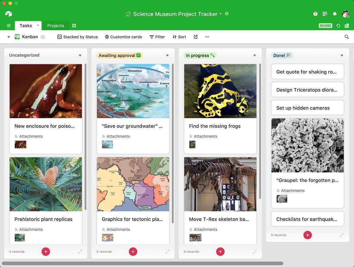 Airtable 不仅有电子表格视图,还有用于管理任务的看板视图和日历视图。