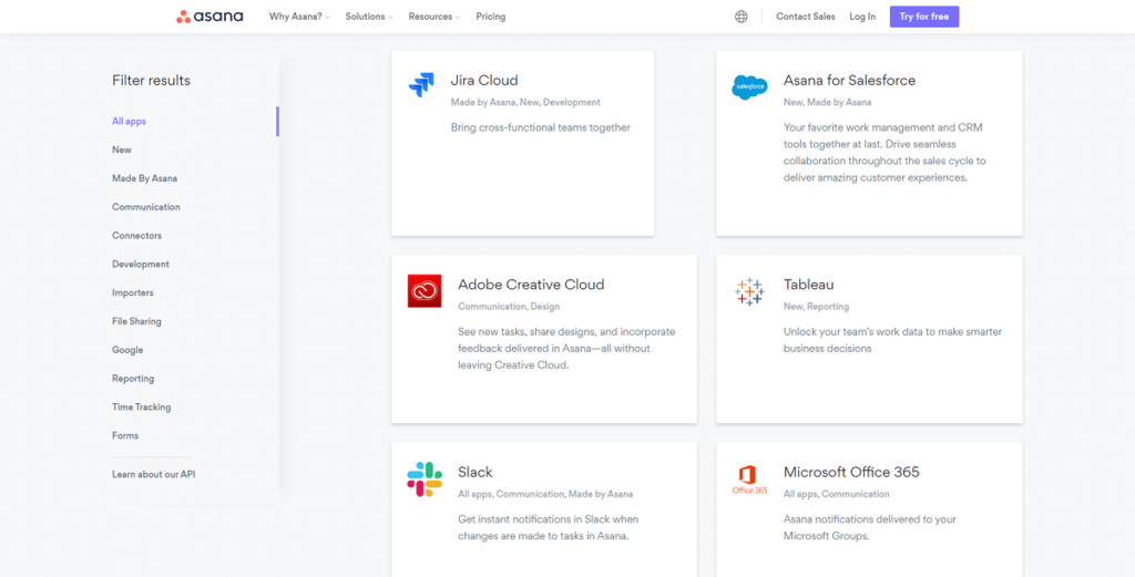 Asana 有 158 个原生集成,包括 Slack、Office 365 和 Salesforce 等主要应用程序。