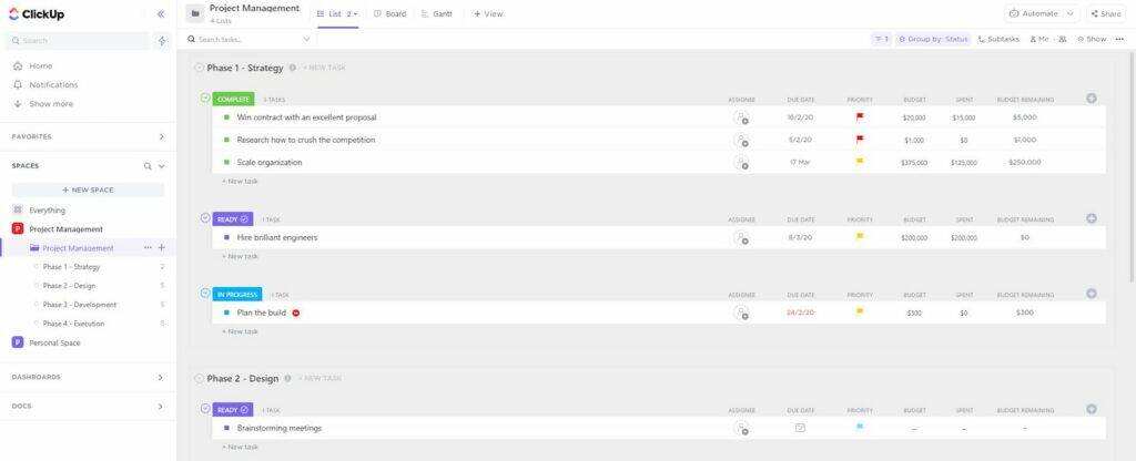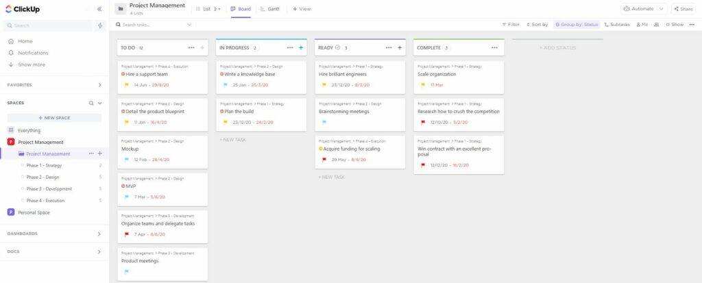 Asana 采用看板方式进行任务管理,其功能与 Trello 相当。它还包括更先进的工作流程自动化功能和三种不同的视图。
