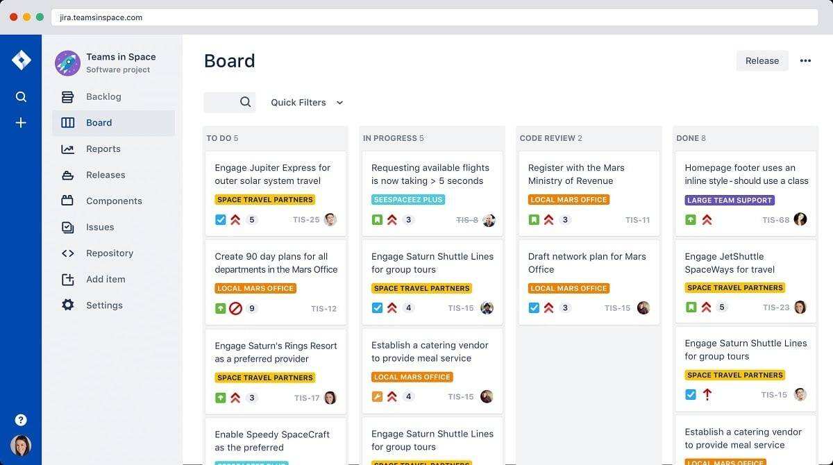 Jira 的看板视图功能与 Trello 几乎完全相同。