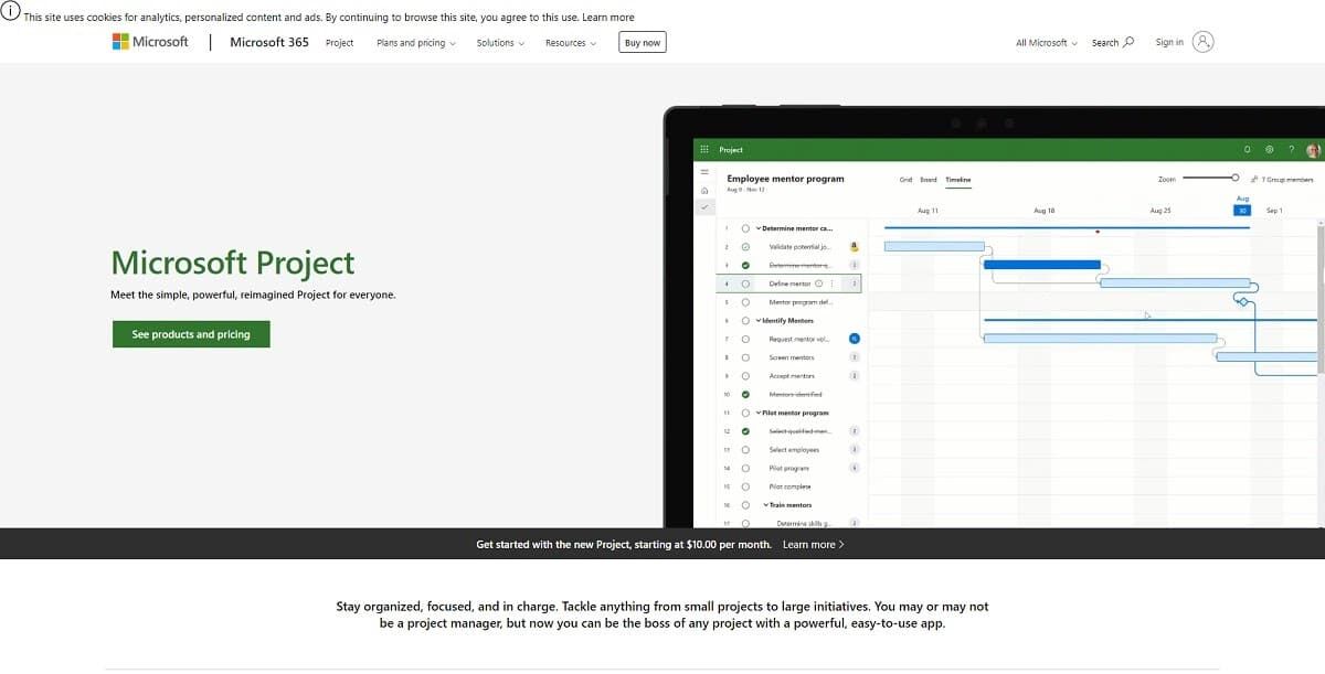 - Microsoft Project(最低计划 10 美元/用户/月)