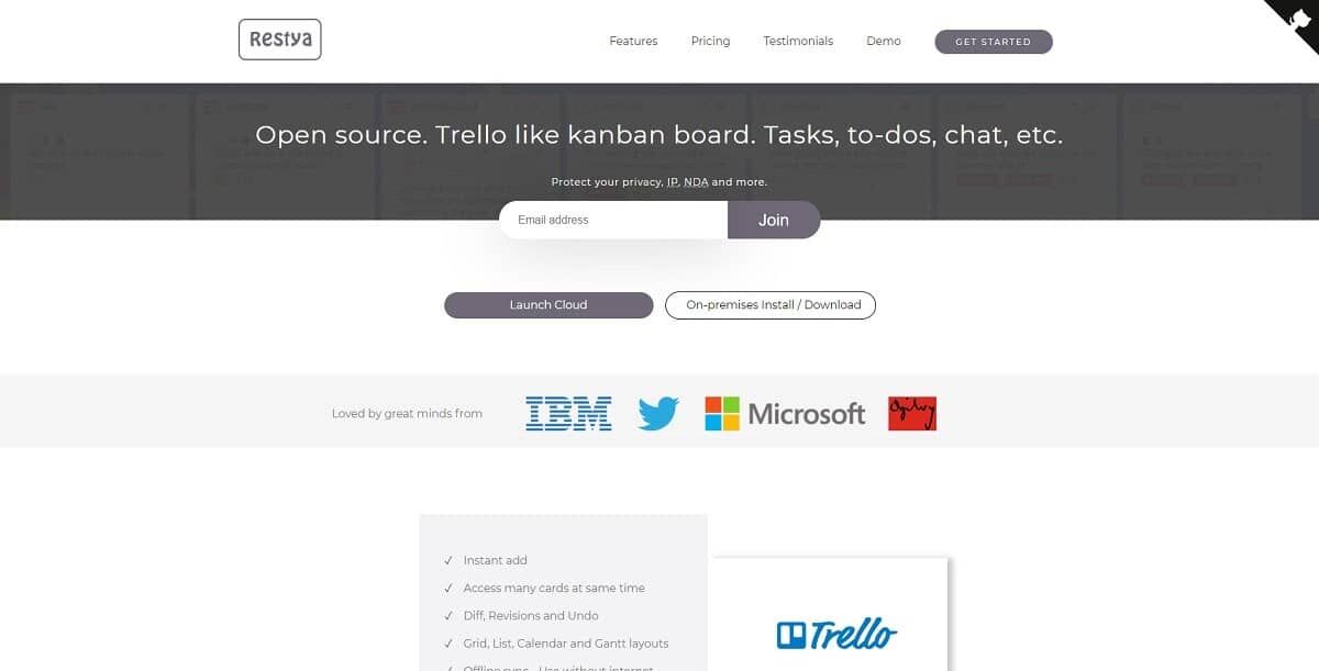 Restya 是 Trello 和其他项目管理软件的开源替代软件。该软件既可基于云端安装,也可在企业内部安装。