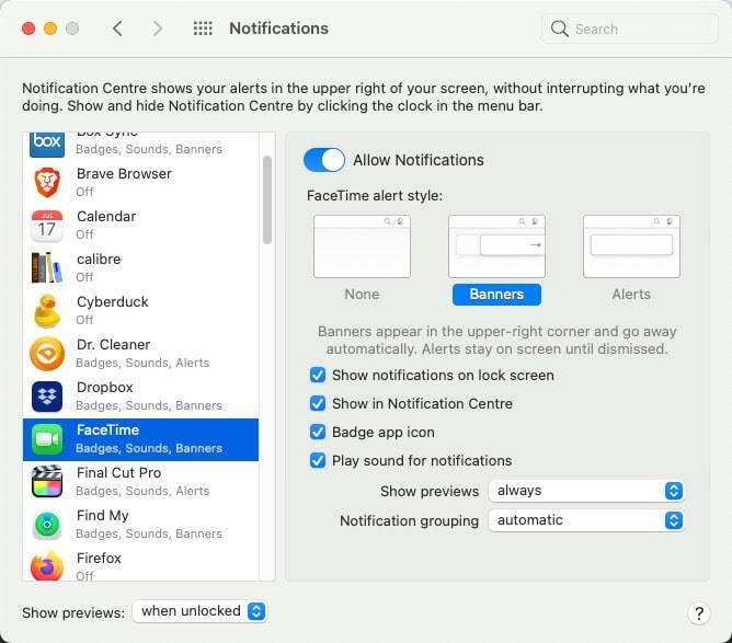 如果你使用 macOS,可以根据自己的偏好暂停或禁用通知。要停止所有通知,请打开苹果菜单,进入 “系统偏好设置“>”通知“。