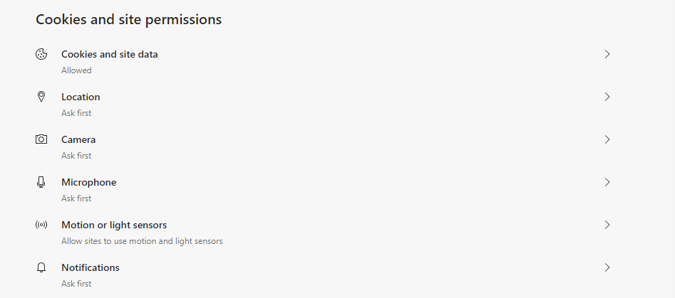 要访问这些设置,请进入 “设置“>”隐私和安全“,然后选择 “网站设置” 选项:
