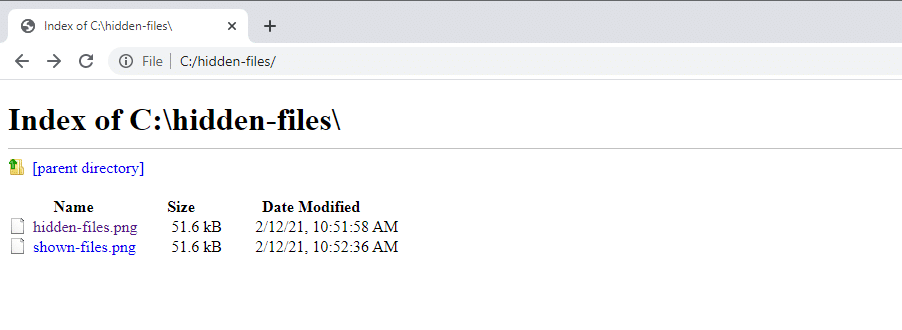但通过网络浏览器,你可以立即看到文件夹中的所有文件,包括隐藏文件: