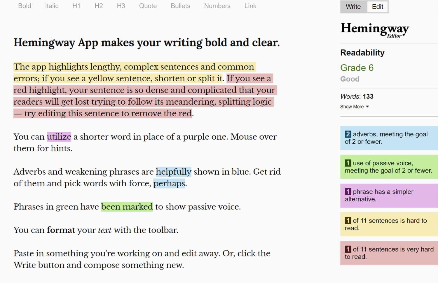 Hemingway 应用程序是一款免费的语法检查工具,它能对你为自己或客户创建的书面内容提供许多有用的见解。其中最有趣的是,它可以判断你的内容的阅读水平,比如你使用的词语和句子结构对于普通网络受众来说是否过于高级。