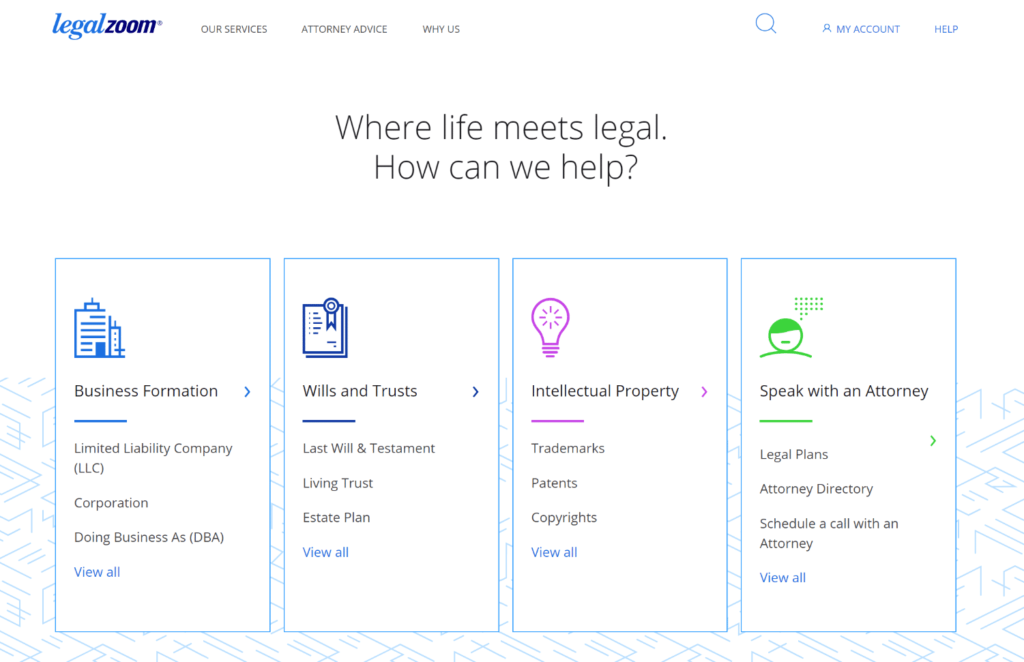 LegalZoom 为会员提供法律文件模板库,每月仅需 7.99 美元。如果你在填写 LegalZoom 的模板时遇到困难,律师支持可以帮上大忙。如果你的公司还是新公司,LegalZoom 还可以帮助你组建公司(并担任你的注册代理人)。