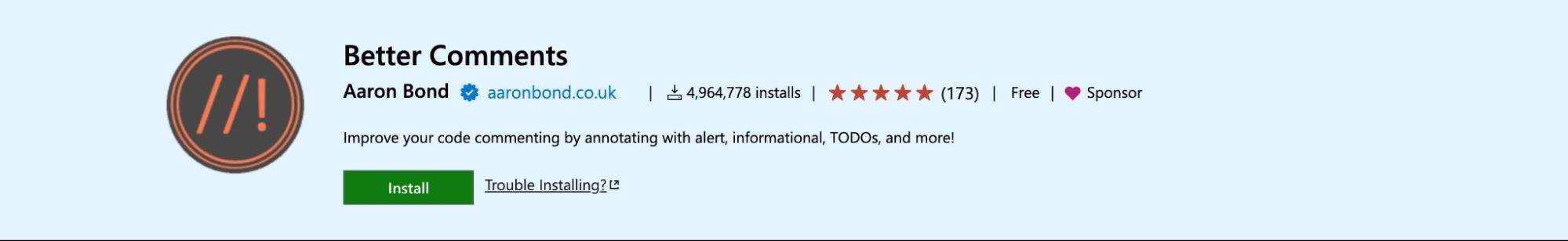 Better comments为您的代码添加了彩色编码的注释,使其更容易区分不同类型的注释。您可以使用不同的前缀来突出重要注释、TODO、警告等。
