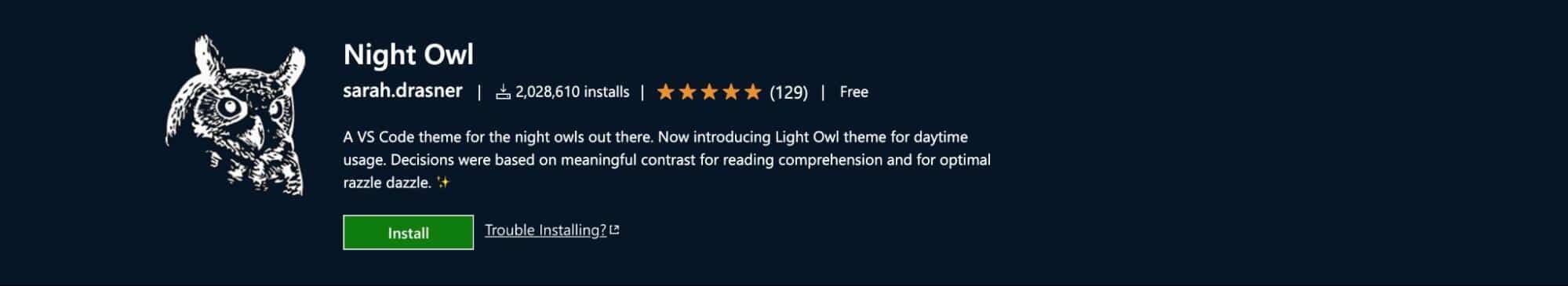 Night owl是一款视觉效果极佳的VS Code主题,它为您的代码编辑器提供了一种舒缓而友好的色调。
