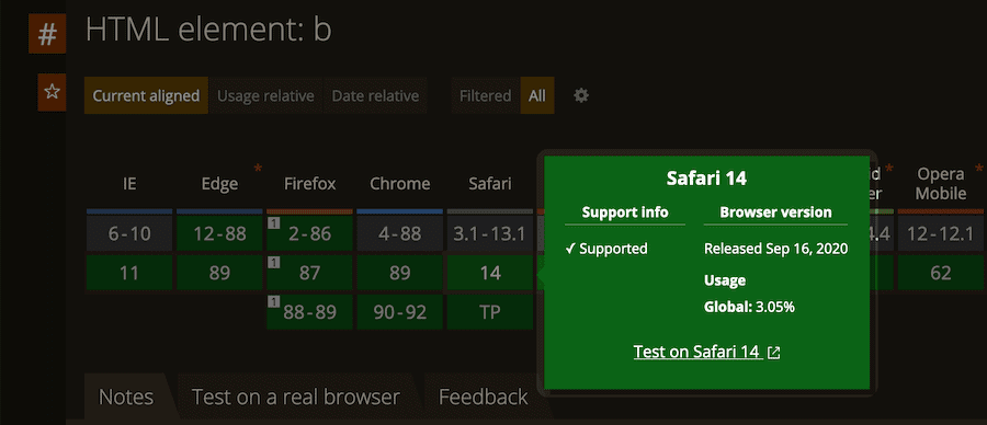 拉出一个特定元素并一目了然地查看您的目标浏览器是否支持它是一个简单的提议: