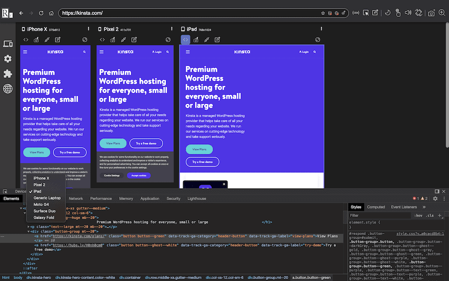 这样做的好处是您可以并排比较布局。它为您提供了提高设备之间一致性的可靠机会。每个设备都是精确的,并且有很多可供选择,如果您的网站针对特定设备,这非常好。