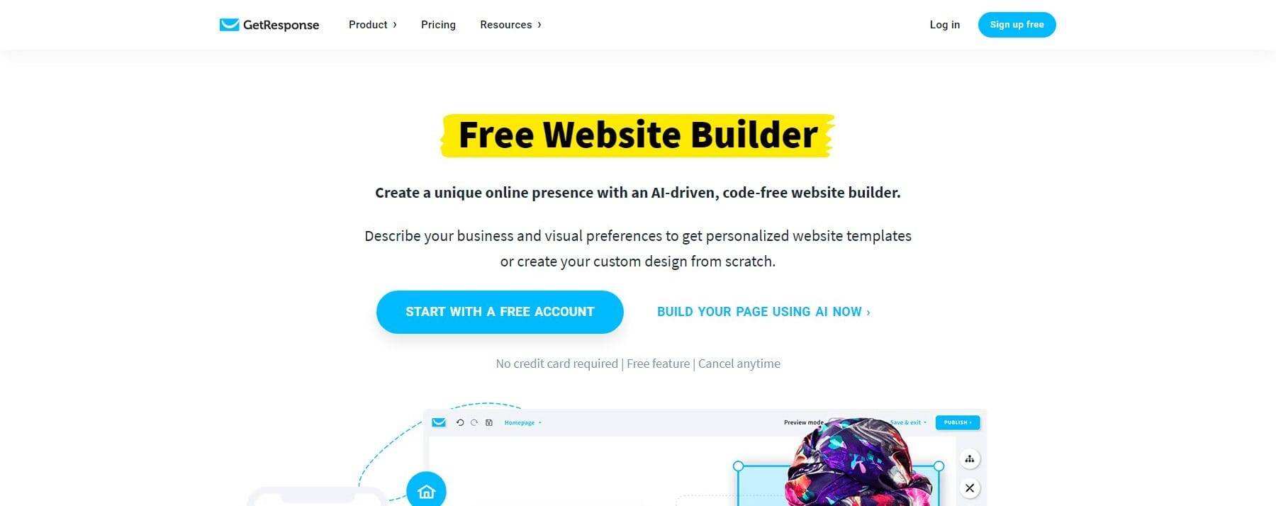 | 7 | GetResponse AI Web Builder | $19/月 | ✔️ |
