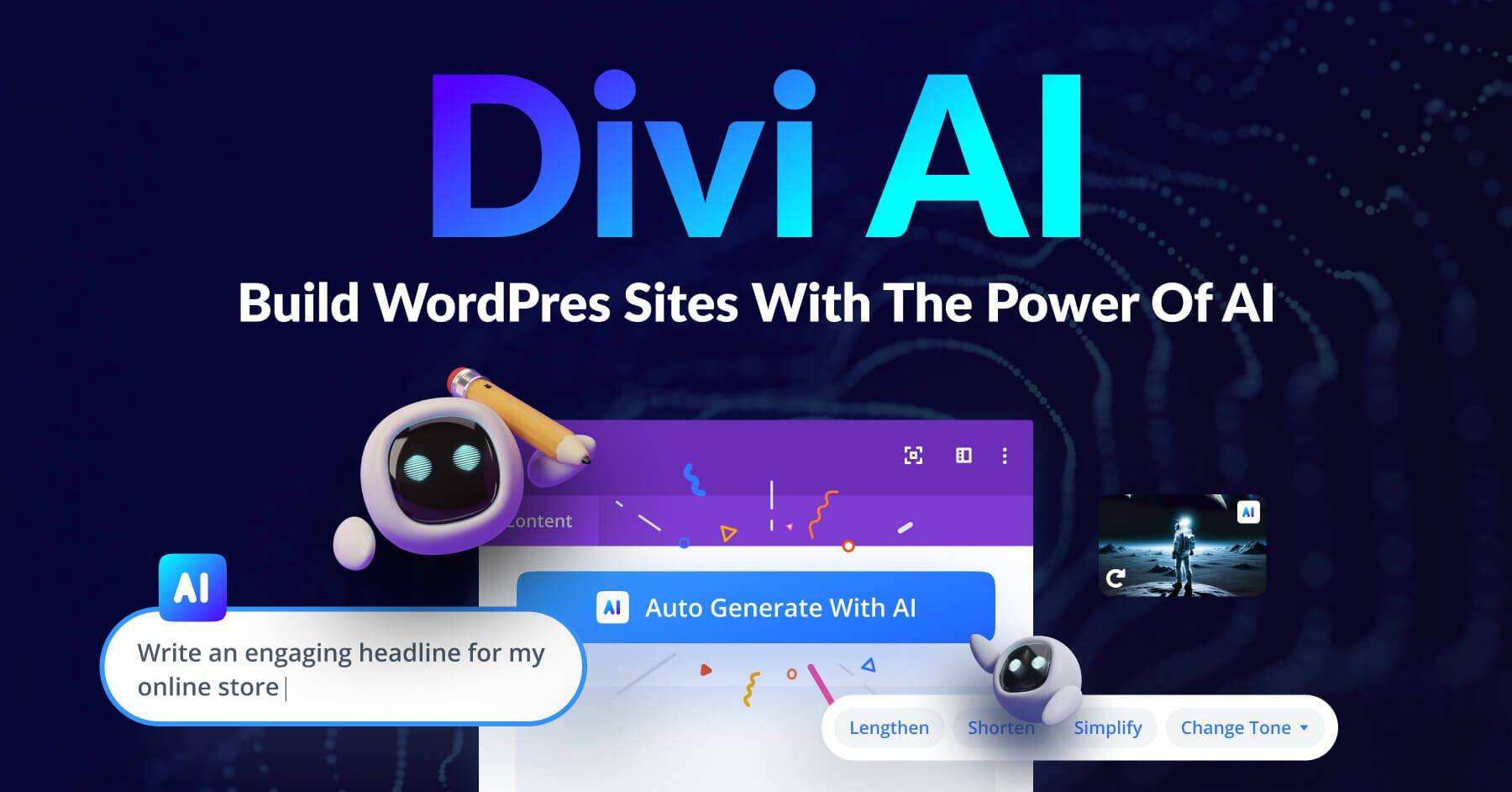 Divi AI 是一款适用于 WordPress 的强大 AI 网站生成器,它利用 AI 的强大功能使网站创建变得简单。它是我们的 WordPress 主题和页面生成器插件 Divi 的一部分。Divi AI 包含人工智能图像生成器、内容撰写器等功能,集强大的人工智能网页设计助手于一身。Divi AI 可以理解您的网站,从而生成与您的品牌相符的相关内容。