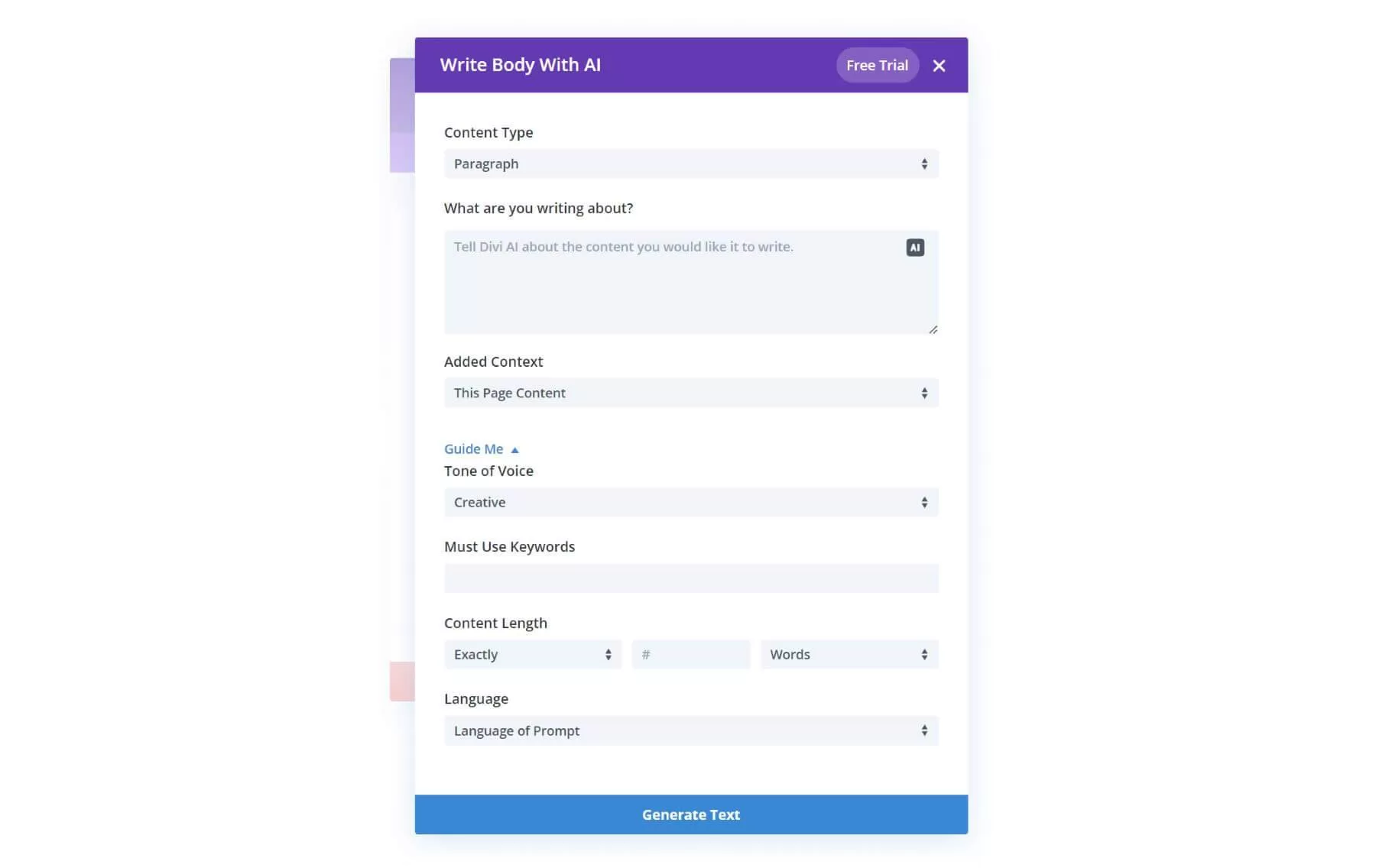 - 没主意了?使用 Divi AI 的提示生成器获取新内容建议。