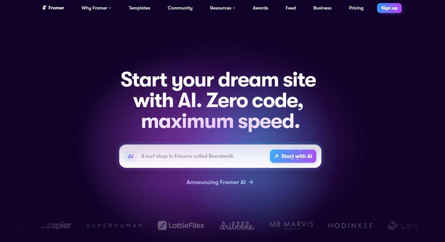 Framer 最适合那些需要将网页设计工具与人工智能生成功能强大结合的人工智能网站建设者。几行文字所产生的效果令人印象深刻。尽管您需要对内容进行调整,但其广泛的设计功能足以完成工作。